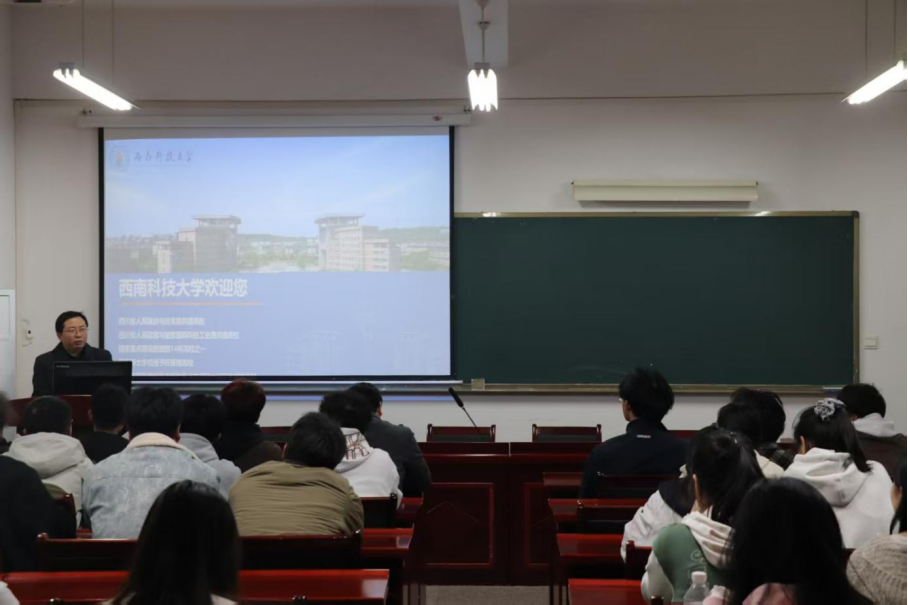 在主校区F栋205教室成功举办考研宣讲大会。本次宣讲会特邀西南科技大学数理学院党委书记贺红梅、副院长田宝单及两位教师担任主讲嘉宾, a片