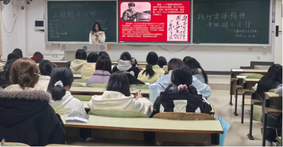 在新校区主教学楼A305开展“践行雷锋精神 争做湖工先锋”主题宣讲活动。本次宣讲由统计学2501班刘涵悦主讲,70余名同学参加。