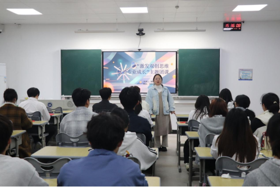 讲座中,杨俐紧扣学院学科专业特色,围绕双创思维培养、专业创新方向、校园双创实践渠道和个人学业成长规划等内容开展宣讲。她结合学校创新创业工作要求,用通俗易懂的语言讲解低年级学生入门双创的基本路径,引导同学们认清专业优势、找准创新切入点,打破“创新创业离自己很远”的认知误区。她鼓励学生立足课堂深耕专业知识,立足校园积极参与创新实践,早做规划、主动尝试,把专业所学转化为创新能力,以双创赋能个人成长发展。
