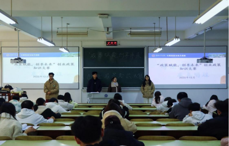 在新校区教学楼D202教室举办“政策赋能创享未来”创业政策知识大赛。本次大赛以“以赛促学、以学促用”为宗旨,为广大有创业意向的学子献上了一场兼具专业性与实用性的知识盛宴,全院50余名学生踊跃报名参与。