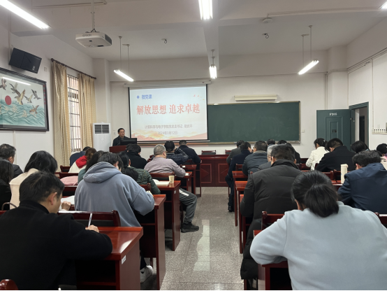 学院院长邓永和结合当前高等教育的新形势和新一轮产业革命和技术的要求,分享了他对学院发展的深入思考。他认为,当前学院面临人才引进和学生就业两大任务,面对学院发展中的困难,要寻找新的突破口,追求卓越,勇闯无人区,党员干部们就必须转变思想、迈开步子、久久为功、持之以恒。