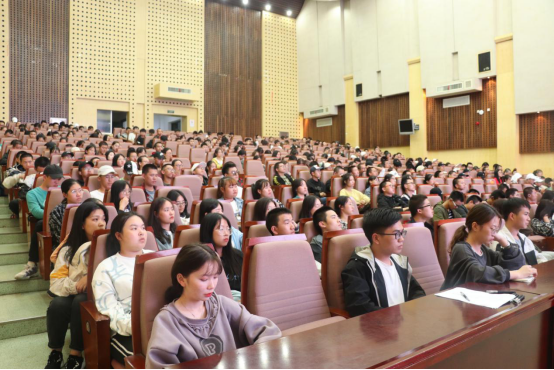 党总支书记贾珍主讲,学院大一至大四近400名学生代表到场聆听了讲座。
