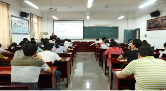 在F205会议室举行“新时代、新中国、新湖南——庆祝中华人民共和国成立70周年”主题讲座,学院党总支书记颜卫人为主讲人,学院全体教职工参加了此次讲座。