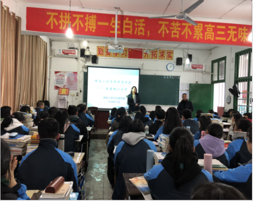 “优质生源基地”桃江四中和岳阳市第十五中学开展了生源基地授牌仪式及科普讲座。理学院党总支书记刘洁纯、党总支副书陈亚琼、就业专干蒋淑亚、桃江四中校长周卫东、副校长陈清海、岳阳市第十五中学年级组长傅凌鹏等人参加了授牌仪式及科普讲座。