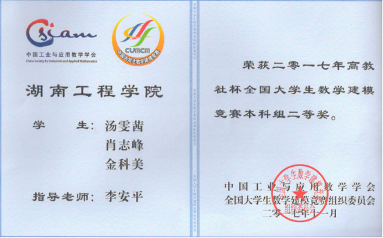 全国大学生数学建模竞赛二等奖
