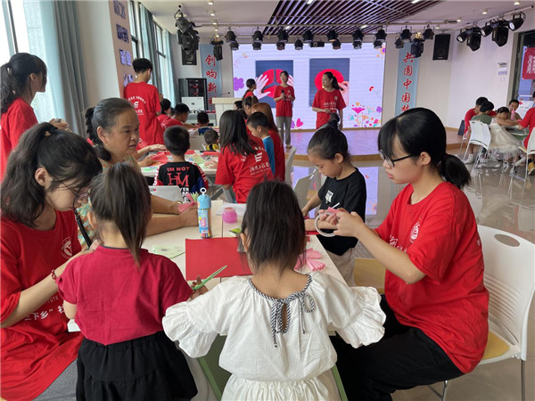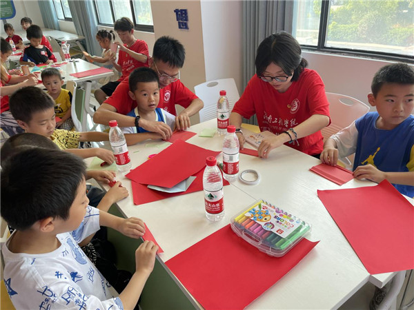 实践活动中,大朋友们和小朋友们手牵手、心连心,结对组建红色文化学习小组,带领小朋友们诵读红色经典诗词、制作红色主题卡片、学唱红色歌曲、学讲红色故事、观看电影,穿梭在时代的长河之中,感悟红色精神的力量。屈原区妇联为孩子们播放预防儿童性侵、防溺水和家风家教等主题的卡通视频,寓教于乐,让孩子们在轻松愉悦的氛围中掌握多种安全小知识。一位家长在微信群中说:“这5天的学习生活虽然很短暂,但给孩子们心中留下了美好的回忆!不爱唱歌、画画的儿子,回家也会哼几句,虽然画的画没有其他的孩子好看,但在我看来是最好看的!因为他以前从来不爱画画!谢谢大哥哥大姐姐们!”