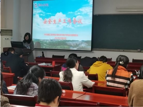 在主教学楼F205会议室召开安全生产工作会议,党总支部书记贾珍主持会议,全体教职工参加会议。