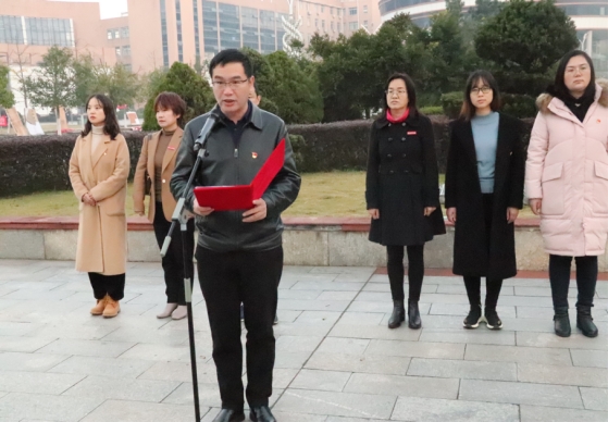 于主校区知行广场以“传承红色基因勇担时代使命”为主题举行升旗仪式。学院院长邓永和、党总支部书记贾珍、学办老师及学生党员干部、21级全体学生参加,党总支部副书记李欣主持升旗仪式。