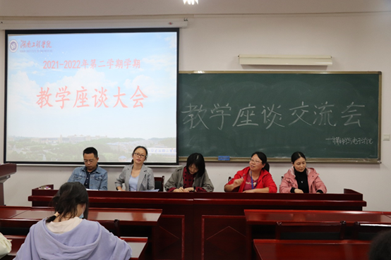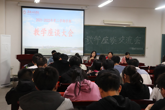 在主教学楼F205举行了2021-2022学年第二学期教学座谈会。会议由主管教学工作的副院长田智鲲主持,教研室主任及教师代表肖刚、容青艳、王祝君、刘兰初、李小青参加,学院各个班级的班长、学习委员作为学生代表参加了此次座谈会。