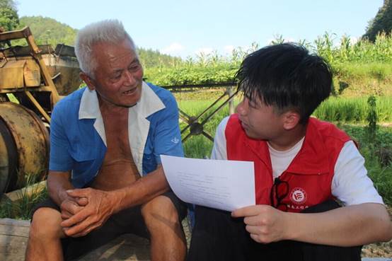 图为实践团成员对村民进行红色文化问卷调查。任格仪 摄