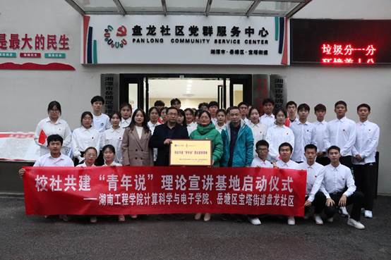 和盘龙社区“共建‘青年说’宣讲基地”启动仪式在湘潭市宝塔街道盘龙社区举行。湘潭市宝塔街道盘龙社区党总支书记潘敏、 a片