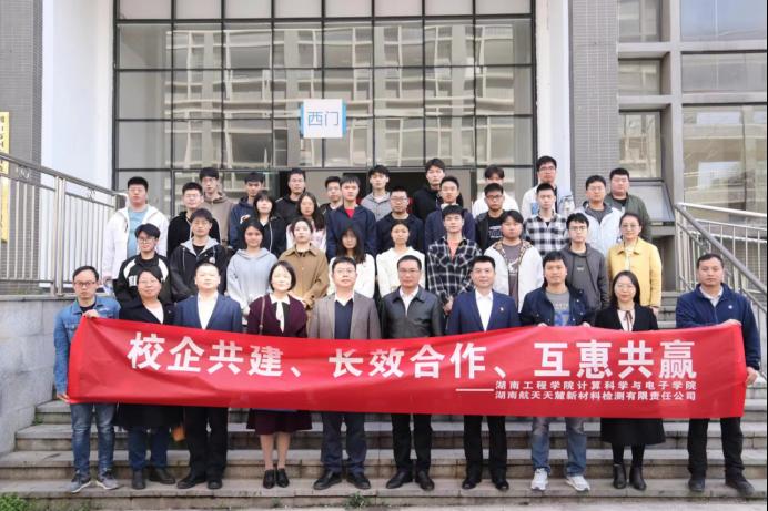 院长邓永和、副院长陈桥、田智鲲以及湖南航天天麓新材料检测有限公司董事长胡兴、副总经理戴铮、工会主席张军生、总会计师米凤英、人力资源部部长邓亚等出席挂牌仪式,院长邓永和与董事长胡兴共同为实习基地揭牌。
