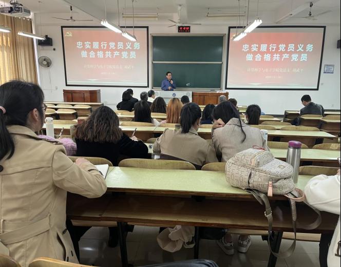 党总支书记胡武平在教学楼D-302教室讲授了一堂题为《忠实履行党员义务 做合格共产党员》的专题党课,学院师生党员共120余人参加了学习。