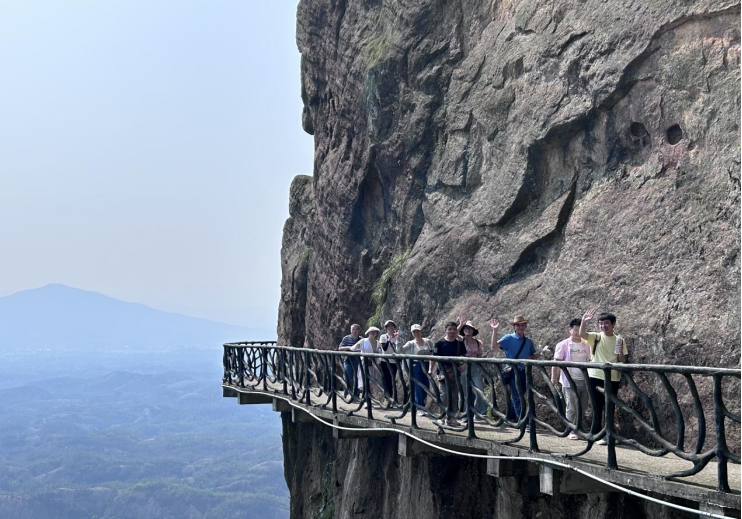 下午,大家来到湘鄂赣革命根据地红色旅游胜地——石牛寨进行登山游览。石牛寨以奇险著称,山中到处可见千姿百态的怪石、鬼斧神工的奇峰,元末义军的故事让这片美丽的山寨充满神奇的色彩。一行人翻山越岭,走红军小道,过九曲一线天,观百里丹霞,游走绝壁栈道……尽管登山之路,地势陡峭、海拔较高,但是大家在行程中相互帮助,互相鼓励,不畏艰险,凭借顽强的意志登上山顶。