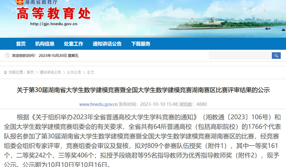 近日,2023年“高教社杯”全国大学生数学建模竞赛和湖南省高校第八届研究生数学建模竞赛成绩分别揭晓, a片