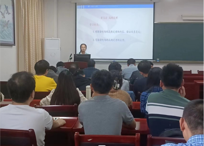 容青艳以“高斯定理”为教学案例,向与会人员介绍了怎样利用“学习通”来有效进行课堂管理和作业批阅。通过问题导入、重点板书、设置问题、随堂练习等方法,让学生紧紧跟随老师的教学,大力提升“抬头率”,保证了课堂教学效果。