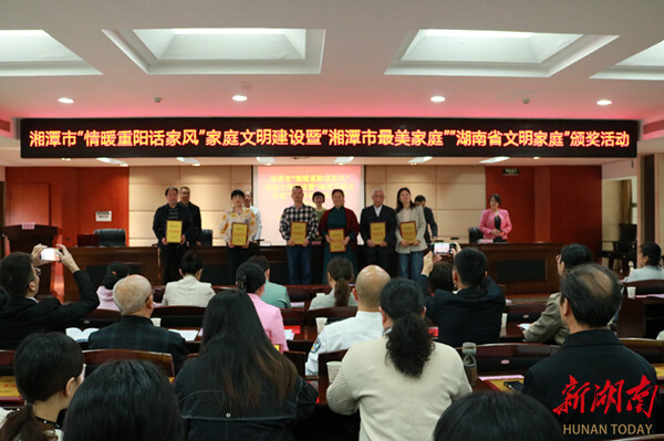 10月26日讯(通讯员 李轶敏 朱洁)10月20日,湘潭市妇联联合市文明办举办湘潭市“情暖重阳话家风”家庭文明建设暨“湘潭市最美家庭”“湖南省文明家庭”颁奖活动。活动现场揭晓了30户在孝亲、书香、清廉、绿色等方面有突出事迹的最美家庭。 a片