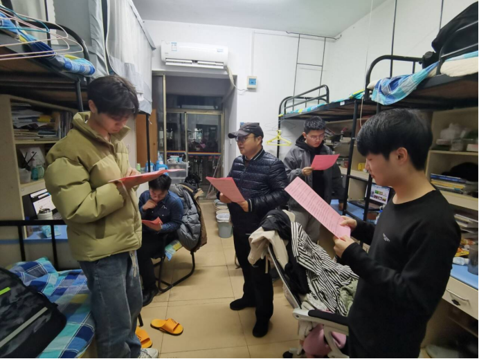 “感谢学院精心为我们准备的心理调适指南。”学院老师下沉到学生宿舍,一间一间宿舍为考研学生加油,了解考研学生在学习、生活中遇到的问题和困难,及时掌握同学们的思想动态,围绕考研的备考策略、考试技巧、考试心态等多方面为考研学子解疑答惑,鼓励考研学生。