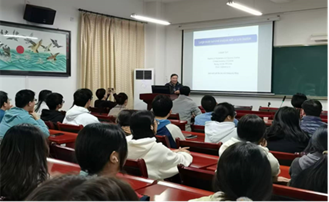 孙六全介绍了大数据背景下生存分析最新动态,以其最新研究成果为主线,深入阐述了研究的方法和技巧,并对未来研究的发展趋势进行了预测。讲座期间,孙六全回答了现场提问并与参会师生进行了深入交流。