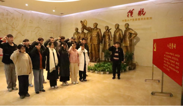 学生党支部书记李进带领党员赴湘潭党史馆开展入党宣誓暨参观学习活动。在庄严肃穆的党史馆大厅,李进书记带领党员面向党旗,举起右拳,庄严宣誓:“我志愿加入中国共产党……”。铿锵有力的誓言,表达了党员们对党的忠诚和为共产主义事业奋斗终身的决心。