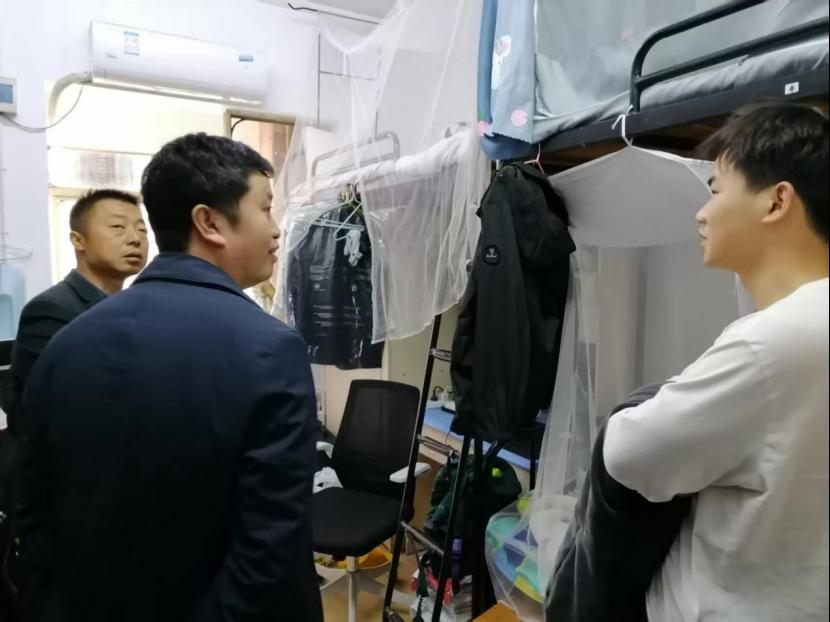 院长陈桥、党委副书记章平带领学办辅导员深入毕业生寝室,围绕学生考研复试、就业进展等核心问题开展交流,为学子送去关怀与指导。