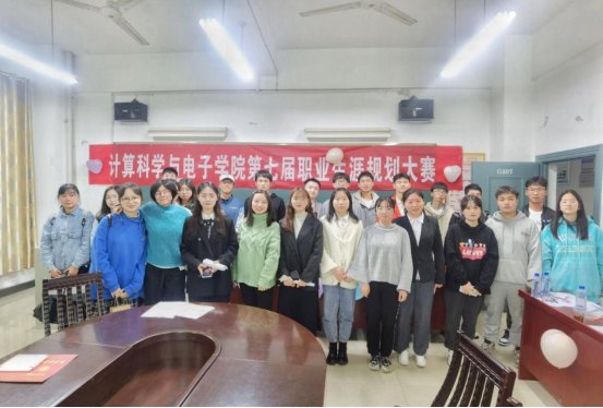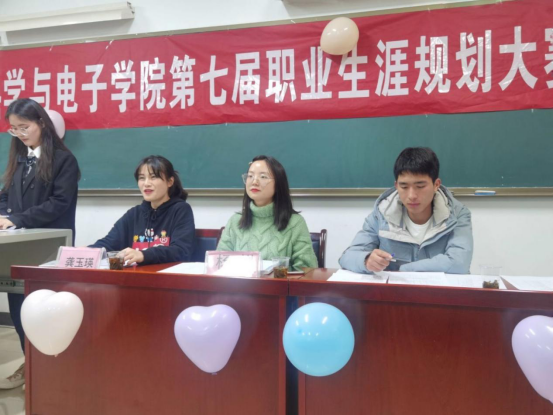第六届职业生涯规划比赛二等奖的龚玉瑛同学以及团学会主要干部担任评委。