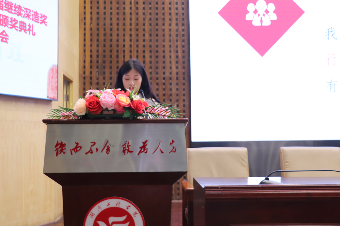 学院院长邓永和宣读了《关于表彰第四届继续深造奖、英语四六级单项优秀奖的决定》文件。邓永和希望受表彰的同学锐意进取、戒骄戒躁,在今后的学习与生活中再创佳绩。