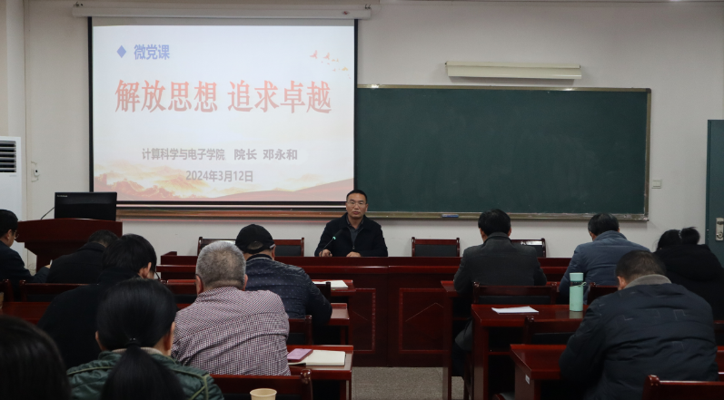 学院院长邓永和结合当前高等教育的新形势和新一轮产业革命和技术的要求,分享了他对学院发展的深入思考。他认为,当前学院面临人才引进和学生就业两大任务,面对学院发展中的困难,要寻找新的突破口,追求卓越,勇闯无人区,党员干部们就必须转变思想、迈开步子、久久为功、持之以恒。