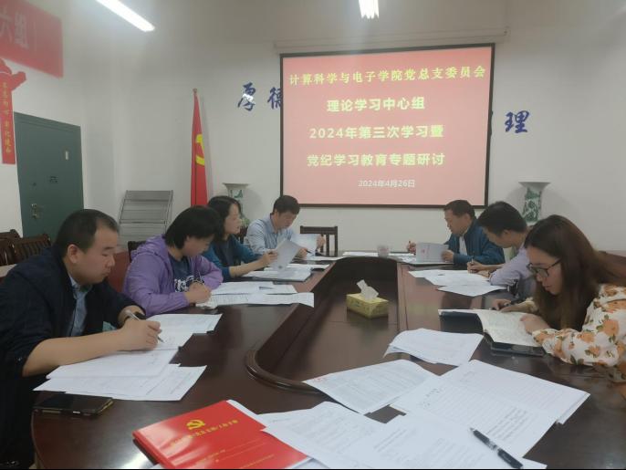 党总支部理论学习中心组(扩大)开展2024年第3次集中学习暨党纪学习教育专题研讨。党总支书记胡武平主持,党总支部理论学习中心组成员参加学习和研讨。