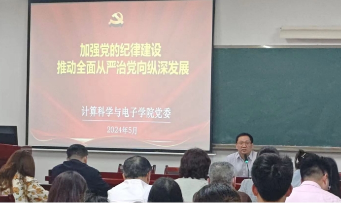 党委在F205会议室召开全院师生党员大会,传达学习中央、省委和校党委开展党纪学习教育的安排,部署学院党纪学习教育。院党委书记胡武平主持会议并讲话。