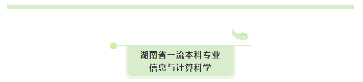 信息与计算科学专业是湖南省双一流建设本科专业、学校综合改革试点专业。现有专业实验室3个,稳定的校外实践教学基地7个。教育部产学合作协同育人实践基地1个,湖南省普通高校校企合作创新创业基地1个。教学办公设备和多媒体教室能满足本专业理论教学及实践教学的需要。