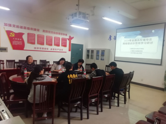 和计算机与通信学院全体辅导员在教学楼G207召开全国高校辅导员网络培训学习研讨会。研讨会围绕案例分析、学习心得分享和辅导员工作交流展开, a片