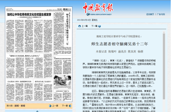 中国教育报报道雷锋社志愿服务活动