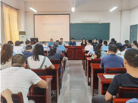 在主教学楼F205会议室召开2021年秋季开学工作布置会。会议由学院党总支部书记贾珍主持, a片