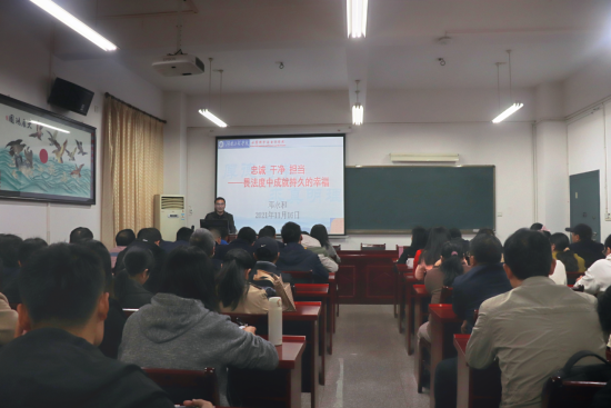 组织教职工理论学习,院长邓永和在主教学楼F205会议室为全院七十余名教职工作“忠诚 干净 担当——畏法度中成就持久的幸福”主题讲座。
