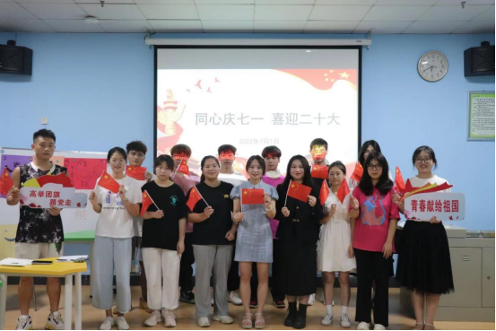 在新校区心理团体辅导活动中心举办“同心庆七一 喜迎二十大”活动,学院团总支书记杨俐组织20名团员青年参加。