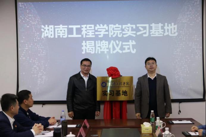 院长邓永和、副院长陈桥、田智鲲以及湖南航天天麓新材料检测有限公司董事长胡兴、副总经理戴铮、工会主席张军生、总会计师米凤英、人力资源部部长邓亚等出席挂牌仪式,院长邓永和与董事长胡兴共同为实习基地揭牌。