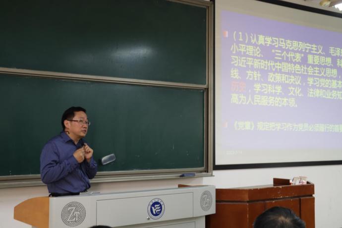 党总支书记胡武平在教学楼D-302教室讲授了一堂题为《忠实履行党员义务 做合格共产党员》的专题党课,学院师生党员共120余人参加了学习。
