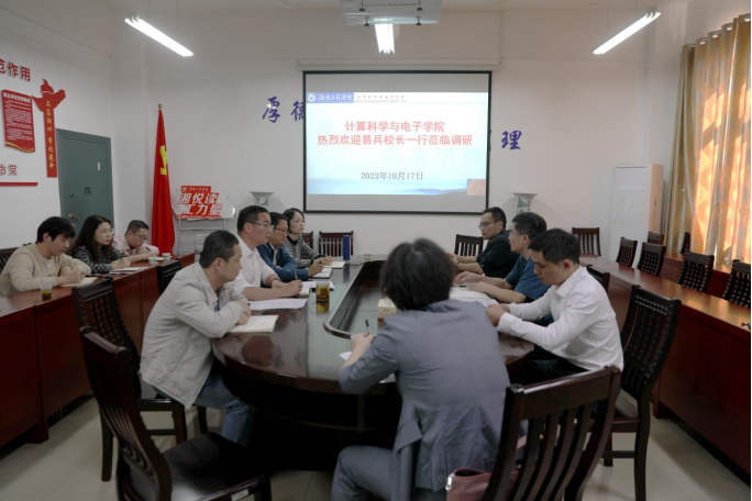 认真听取学院的工作汇报后,易兵表示,学院在过去的一年里,创立益阳专家工作站和湖南省新型研发机构,获批国家自科基金2项,获得发明专利奖1项,2位教师获省级课堂教学竞赛和课程思政教学竞赛一等奖,数学建模竞赛取得历史性突破,学院各项工作卓有成效。针对学院面临的困难,易兵指出,“申硕”工作目前处于“爬坡过坎”阶段,学院班子要锚定目标,坚定信心,凝神聚气,认真落实各项指标。要加强内涵建设,搞好课堂教学改革,提升教学水平。要围绕产业特点,凝炼学科特色,引导学生积极参加学科竞赛,形成 a片