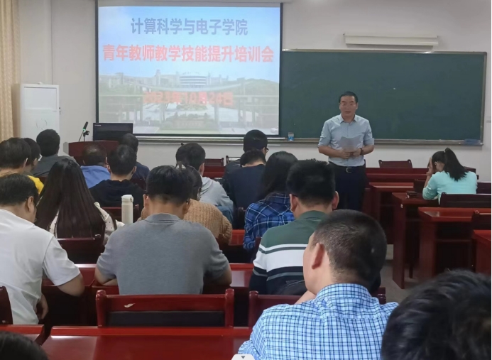 在F205举办青年教师教学技能提升培训会,培训会由邓永和院长主持,陈大学、容青艳和邱罗三位老师主讲,全院40多名青年教师参加培训,田智鲲副院长出席培训会。