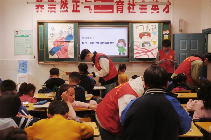 活动中,志愿者们通过播放雷锋原声视频、宣讲雷锋故事、朗读雷锋日记等方式对雷锋生平、雷锋事迹、雷锋精神进行了详细的介绍,带领小朋友们了解雷锋同志无私奉献的品质特征,深刻体会雷锋精神内涵。随后,志愿者们还进行了雷锋知识竞答、夸夸身边“活雷锋”、制作雷锋小书签、教唱歌曲《学习雷锋好榜样》等趣味活动,不仅活跃了现场的氛围,还增强了小朋友们积极参与的积极性和主动性,营造了积极活泼的课堂氛围。