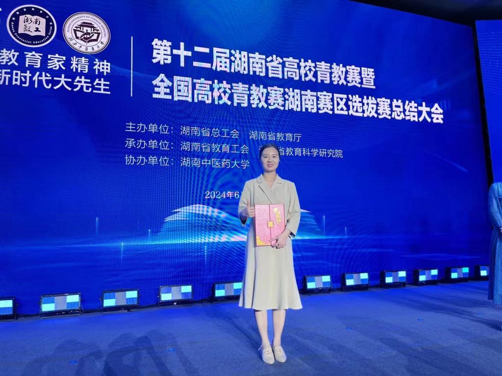 青年教师赵赞,经过校赛、省级复赛顺利进入决赛,最终以理科组第三名的成绩荣获一等奖,并被授予“湖南省教学能手”荣誉称号。上午9时,大赛的总结大会在湖南中医药大学准时召开,在理科组专家中南大学党委常委、副校长何军教授点评本次“青教赛”理科组课堂后, a片