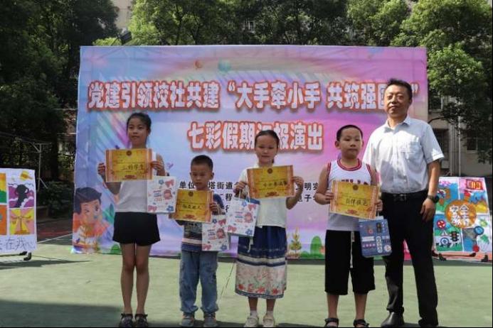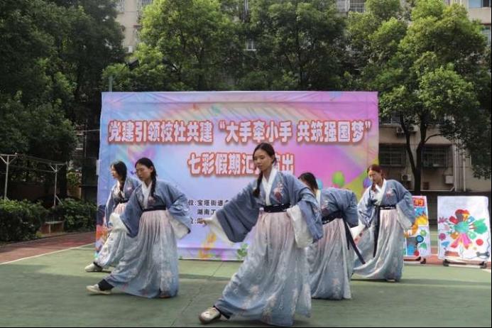 “大手牵小手 共筑强国梦”中华文化传承社会实践团联合盘龙社区在社区开展党建引领校社共建“大手牵小手 共筑强国梦”七彩假期汇报演出。