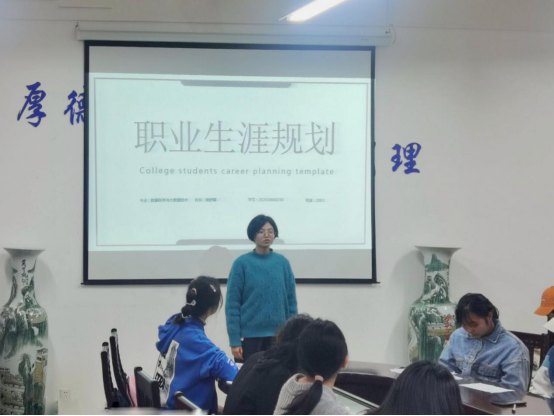 第六届职业生涯规划比赛二等奖的龚玉瑛同学以及团学会主要干部担任评委。